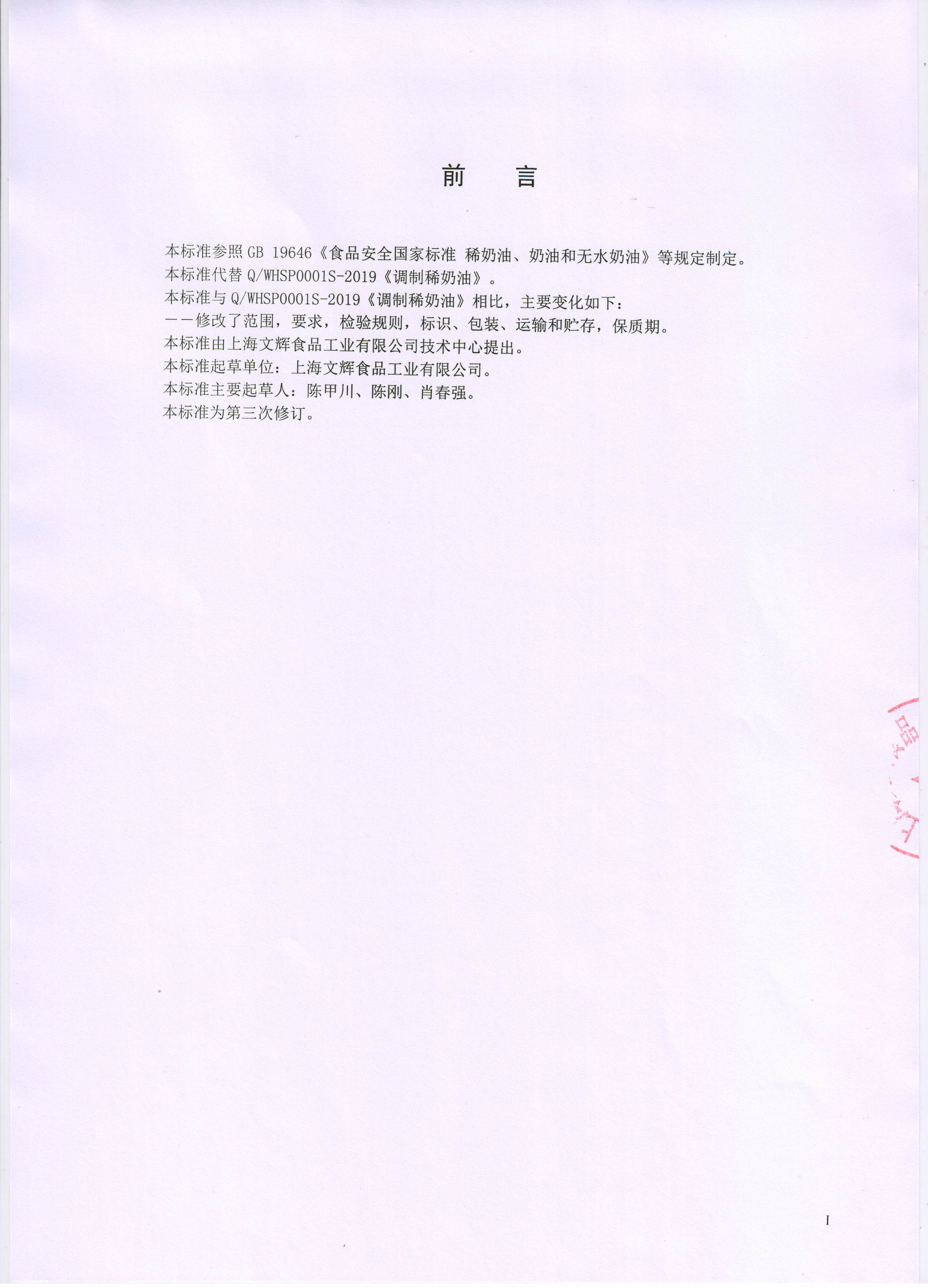 上海文輝食品工業(yè)有限公司企業(yè)標準
